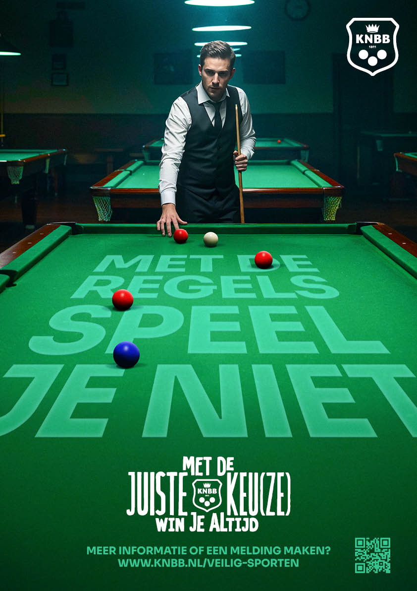 Onze vrijwilligers (bestuursleden, wedstrijdleiders, arbiters etc.) zijn onmisbaar voor onze bond. Dankzij hun inzet kunnen we onze sport blijven beoefenen. Luister daarom goed naar elkaar en blijf respectvol. Toch komt het soms voor dat spelers of teams in een wedstrijd bewust niet alles geven, bijvoorbeeld om een vriend te helpen of om te voorkomen dat een bevriend team degradeert aan het einde van het seizoen. Hoe ‘aardig’ dit ook bedoeld is, het gaat in tegen de essentie van sport. Bovendien kan het kansspelaanbod in pool en snooker in de toekomst een risico vormen voor matchfixing.